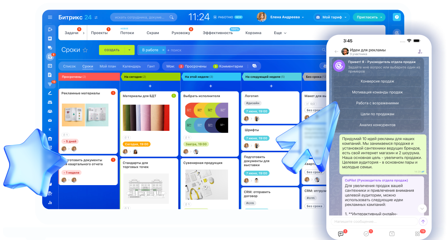 При покупке Битрикс24 на год вы получаете не только полный набор инструментов для бизнеса, но и доступ к встроенному AI‑помощнику CoPilot с количеством запросов на 100 000 ₽.